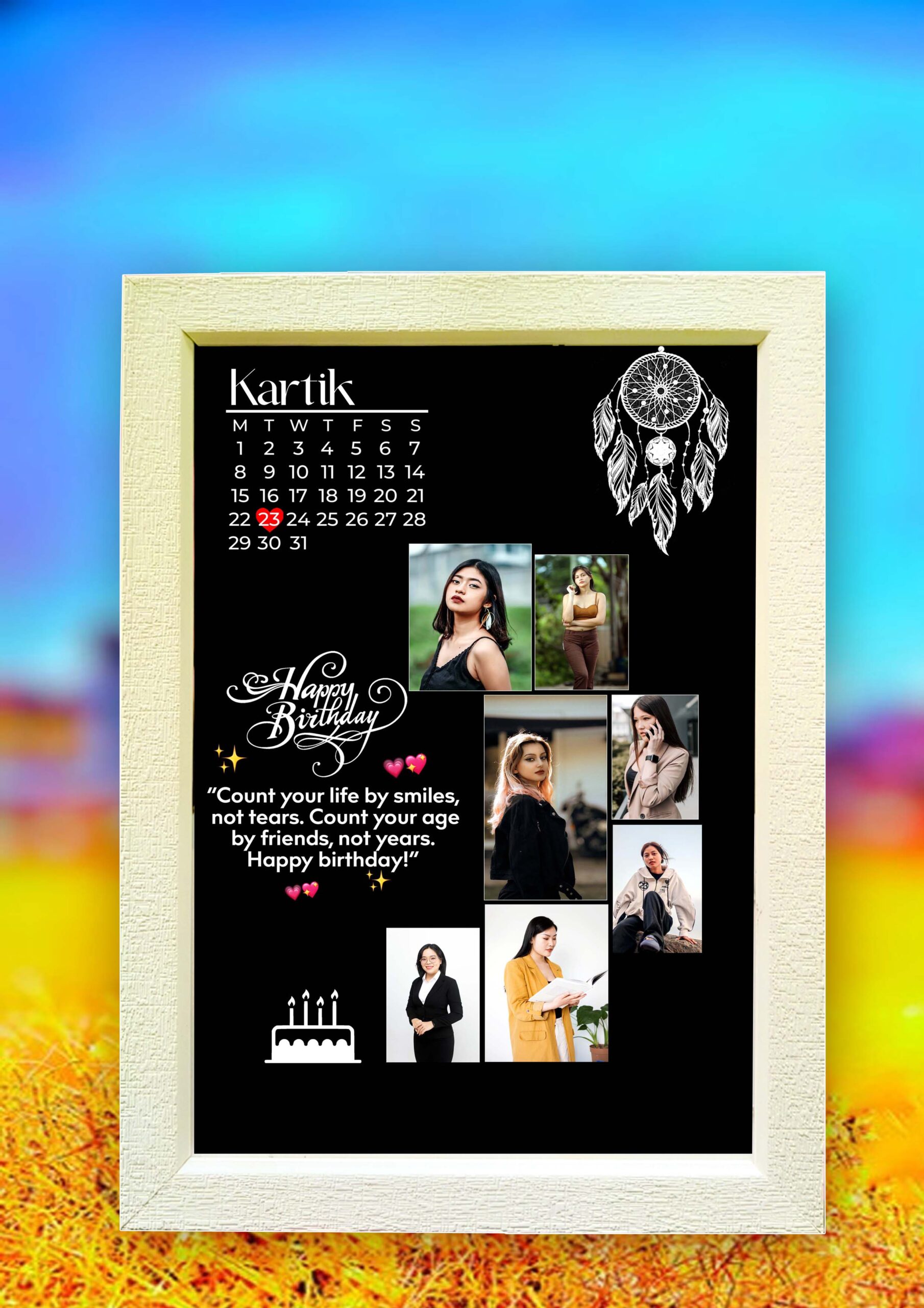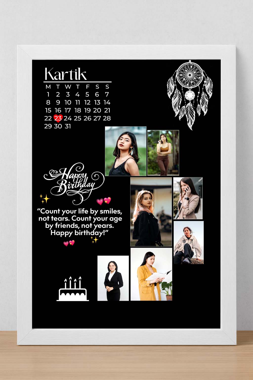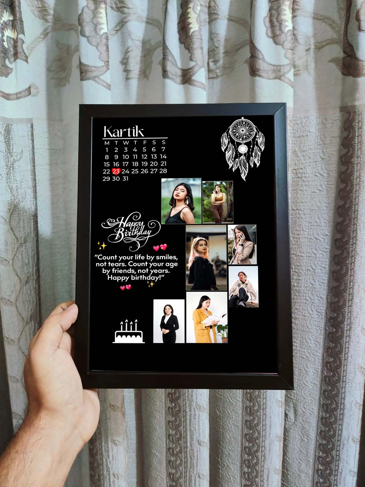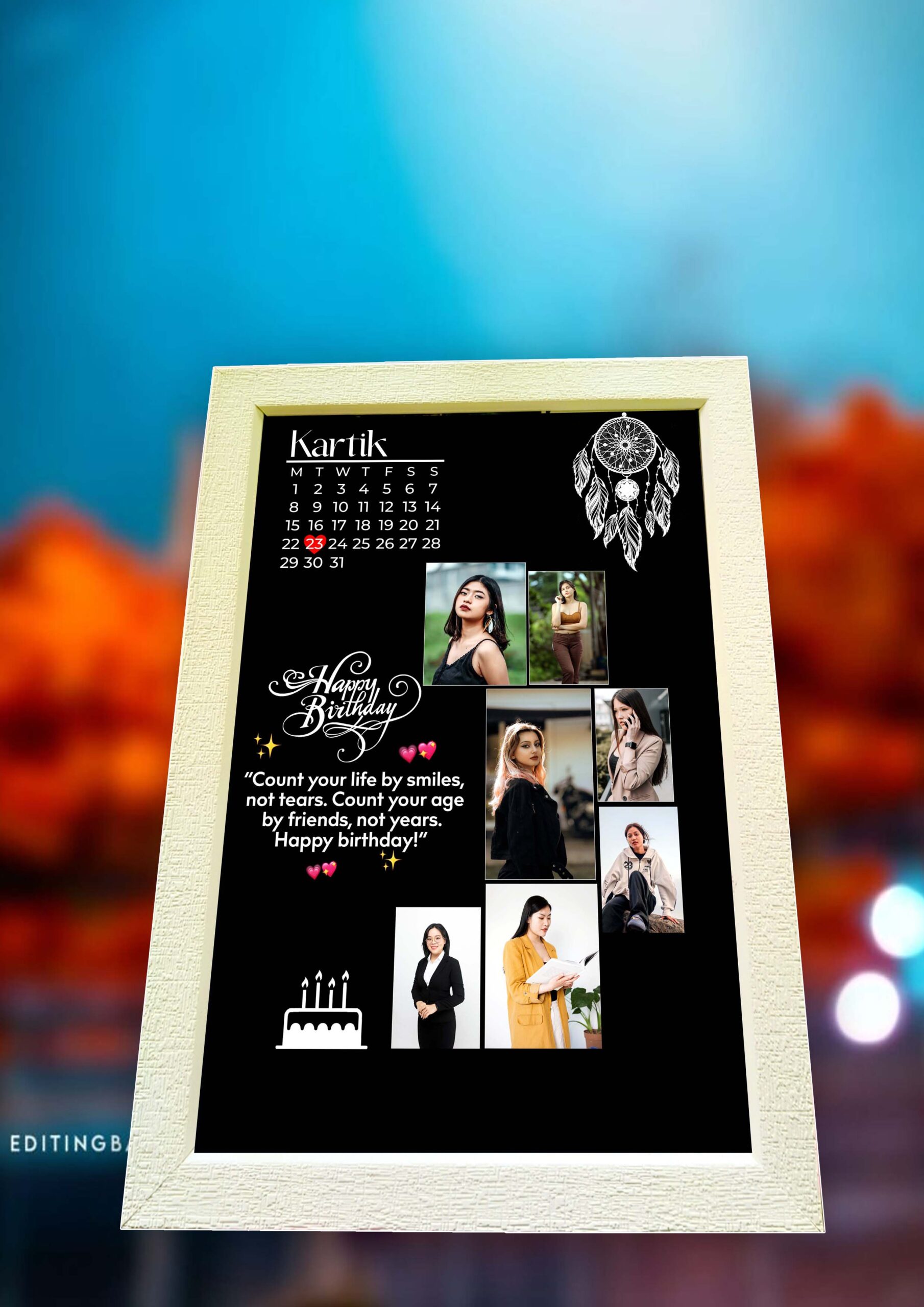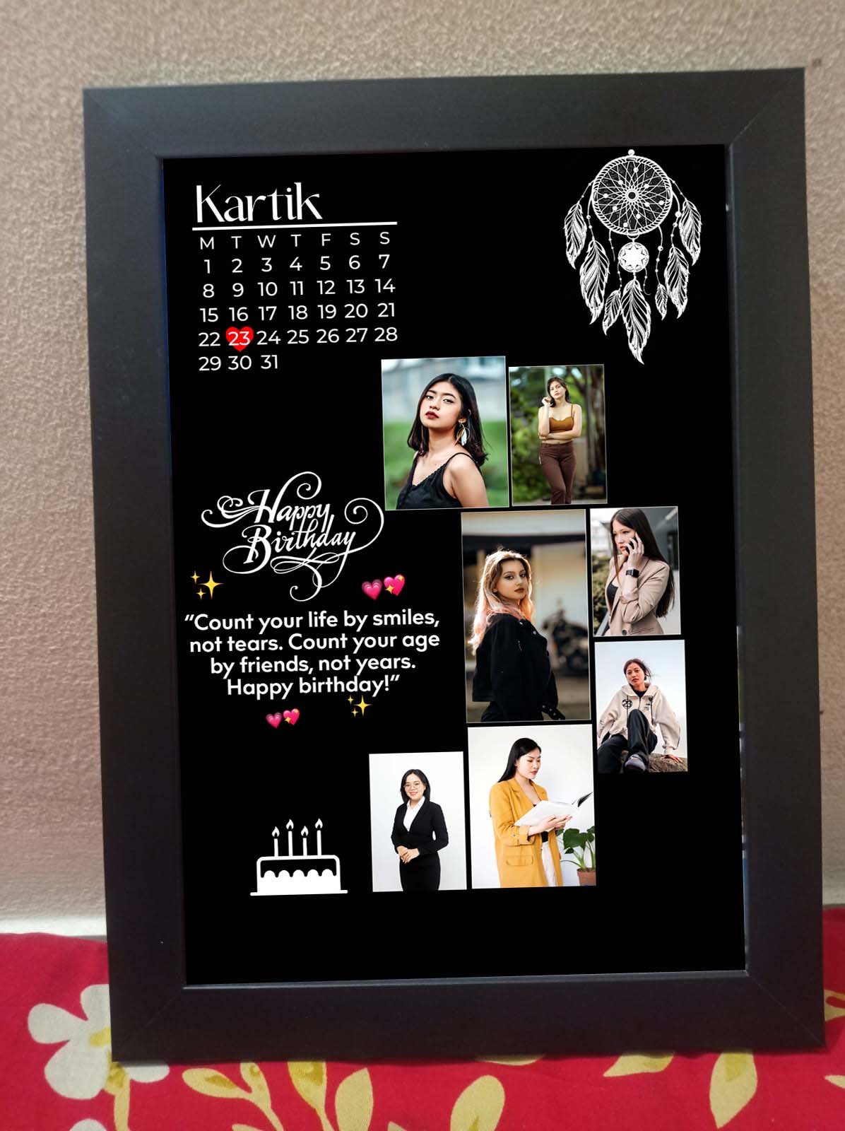 Order a personalized birthday calendar photo frame with name, date & photos. Perfect custom birthday gift and premium wall décor. Available at Khan Studio Prints.